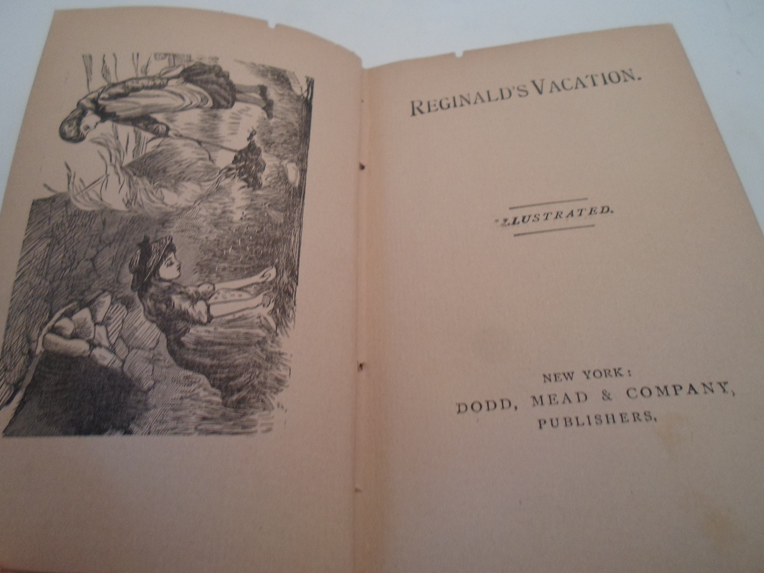 Antique 1890's Victorian Hard Cover Small Book Reginald's Vacation Beautiful Blue Engraved Front with Color Victorian Girl