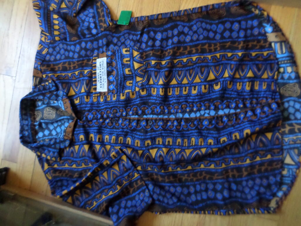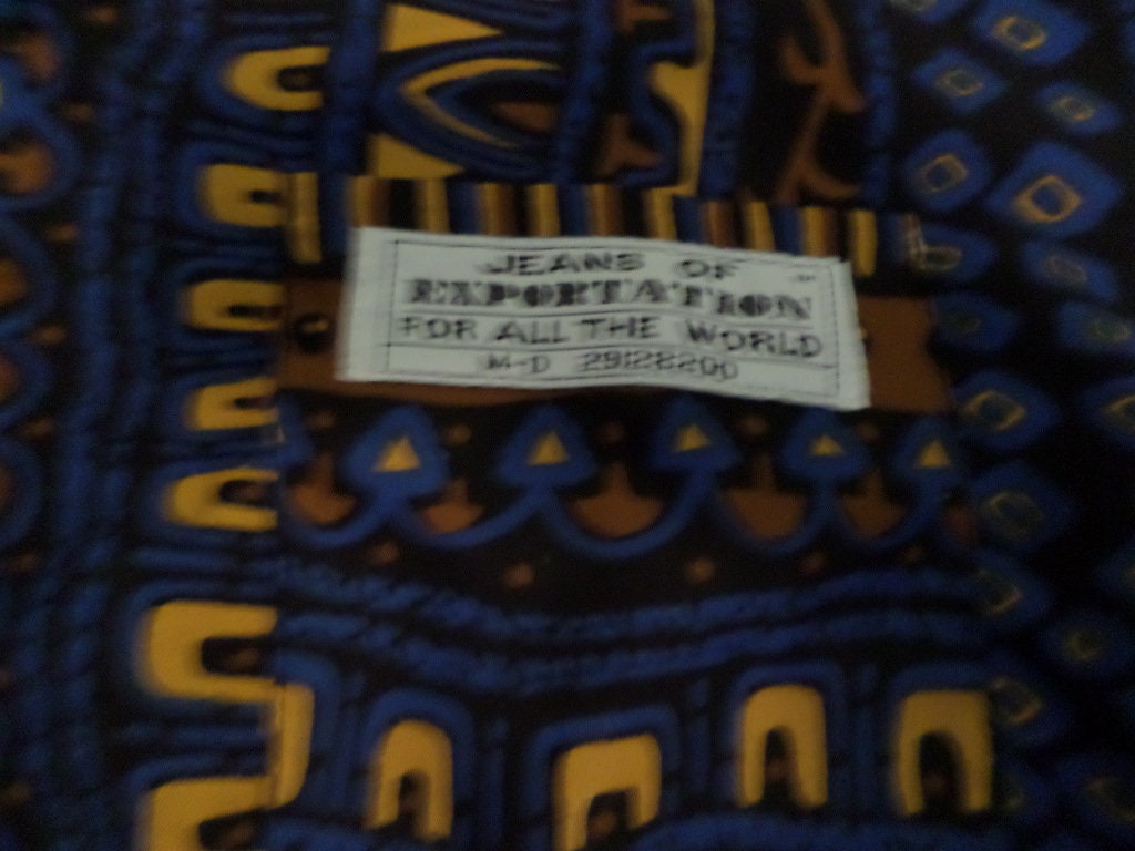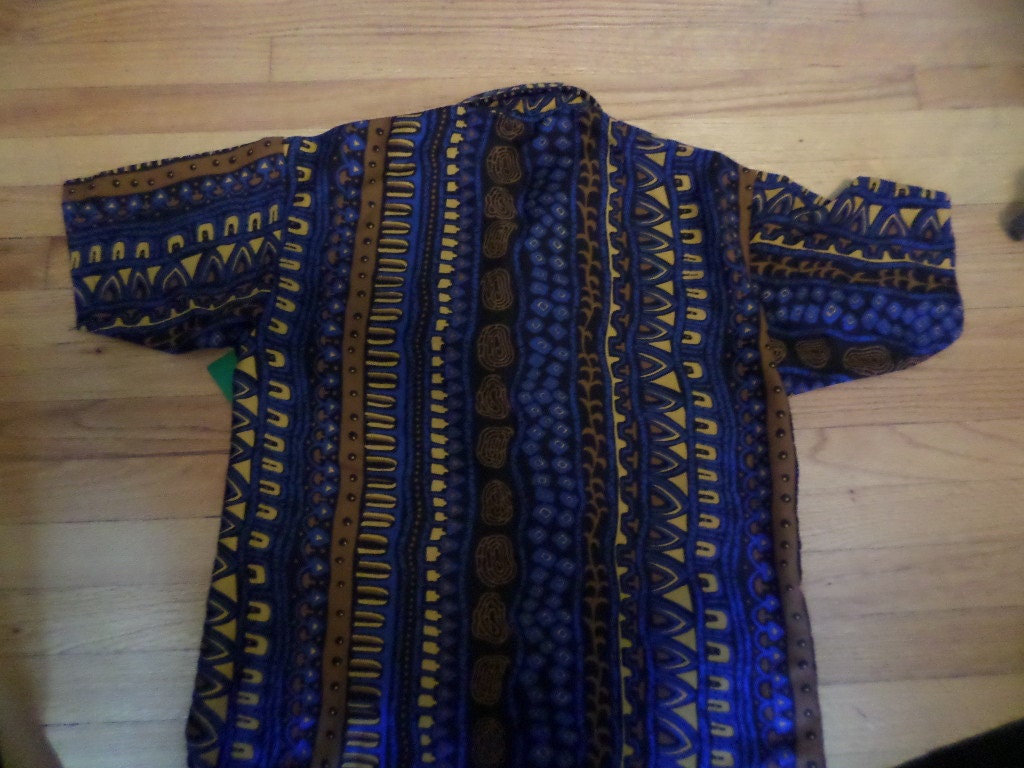 Vintage 90's tribal urban button down Jeans of exportation for all the world size L royal blue brown gold